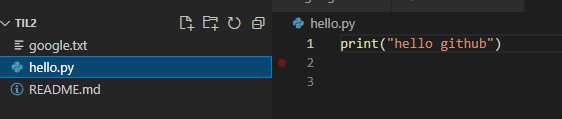 (*나는.txt , .py , .md 파일 3가지를 만들어 보았다. 여기서 자유롭게 만들고 싶은 파일을 만들어보자.)