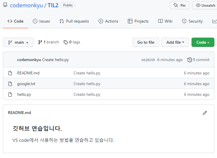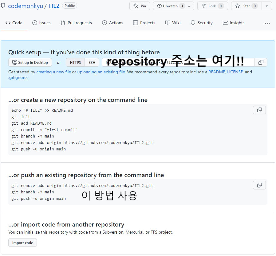 $ git remote add origin https://github.com/codemonkyu/TIL2.git