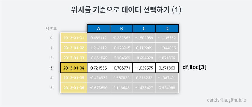- 위치를 이용하여 선택하기:. iloc