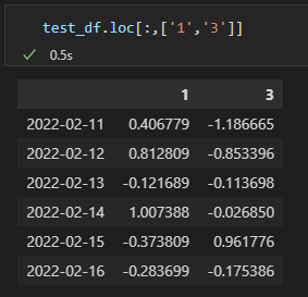 - test_df.loc [row(시작):row(끝), '칼럼명']와 같이 행과 칼럼에 조건에 맞는 데이터 선택하기