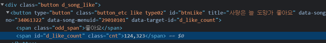 손쉽게 좋아요 수로 보이는 정보를 얻을 수 있었고 아래코드를 통해 좋아요를 가져오려고 했다.
