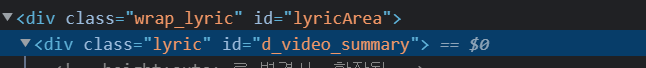 song_lyric = soup.select("div#d_video_summary")