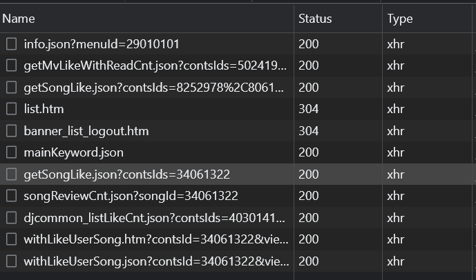 개발자 모드에서 ->Network -> Fetch/XHR 에서 바로 정보를 찾을 수 있었다.