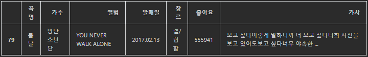 지난 시간에는 멜론 TOP 100 차트 페이지에서 1위부터 100위까지의